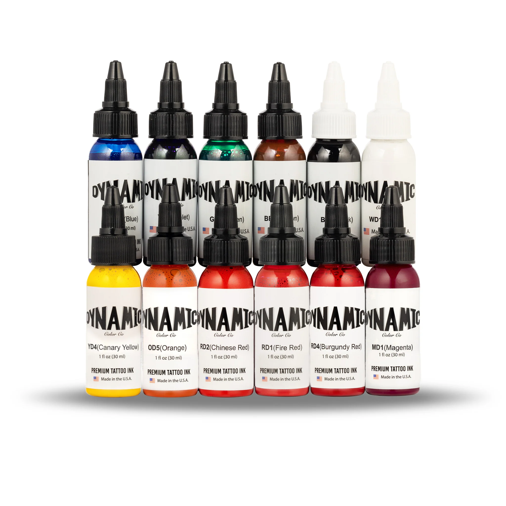 סט צבעים של OG Ink בבקבוקי 1 oz. כולל: אדום בורדו, אדום סיני, אדום אש, ירוק, כחול, כתום, לבן, צהוב קנרית, חום, מג’נטה, סגול ושחור