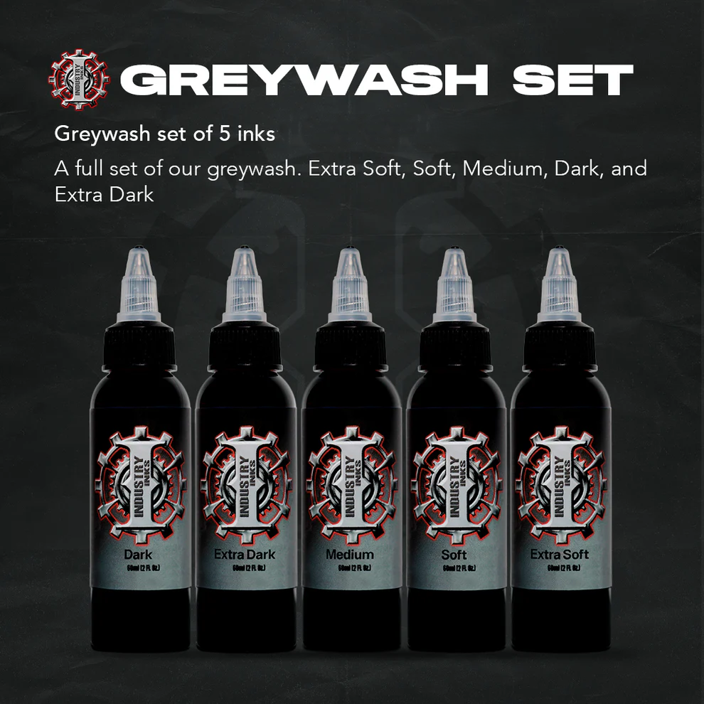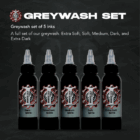 סט ה־Grey Wash ב־5 גוונים הוא אחד הסטים הפופולריים והאמינים ביותר שלנו. הוא פותח והושלם בקפידה, ומציע טווח גוונים חלק לקעקועי שחור־אפור מושלמים. אידיאלי להצללה, למיזוג וליצירת עומק, סט זה מבטיח תוצאות עקביות בכל פעם.