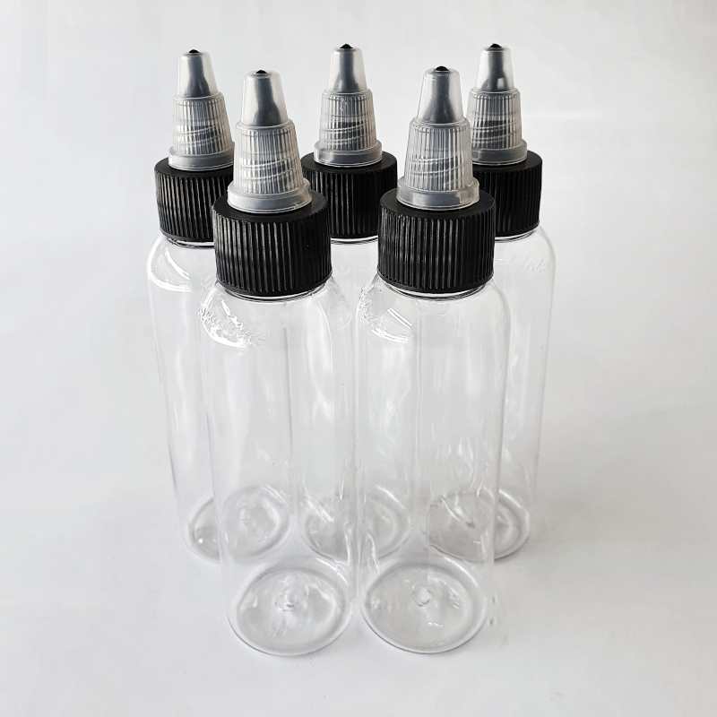60ml clear HDPE plastic bottles with Twist Lock Cap.